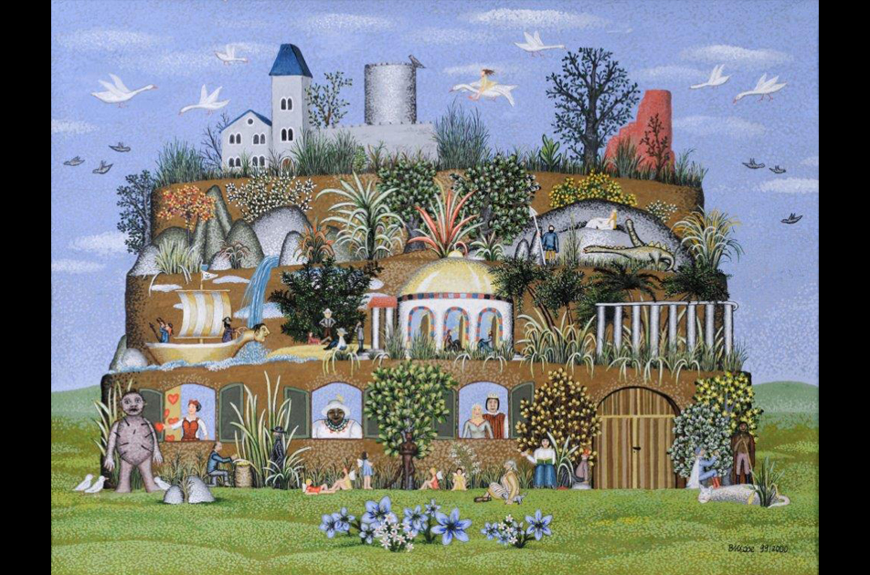 Mit dieser Ausdrucksform schuf sie sich eine individuell geprägte Welt voller idyllischer Paradiese und phantastischer Landschaften.